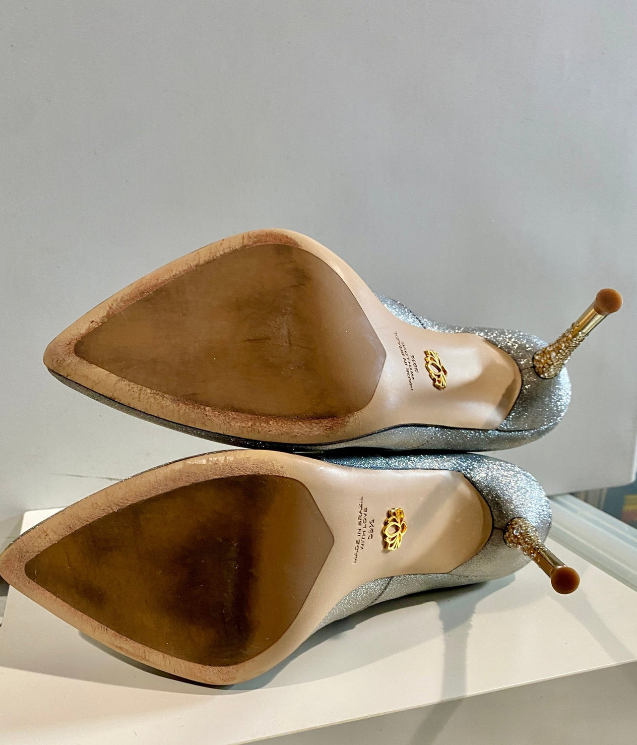 - Production booties worn once for a photo shoot. In perfect condition only the soles have some wear. See photos.