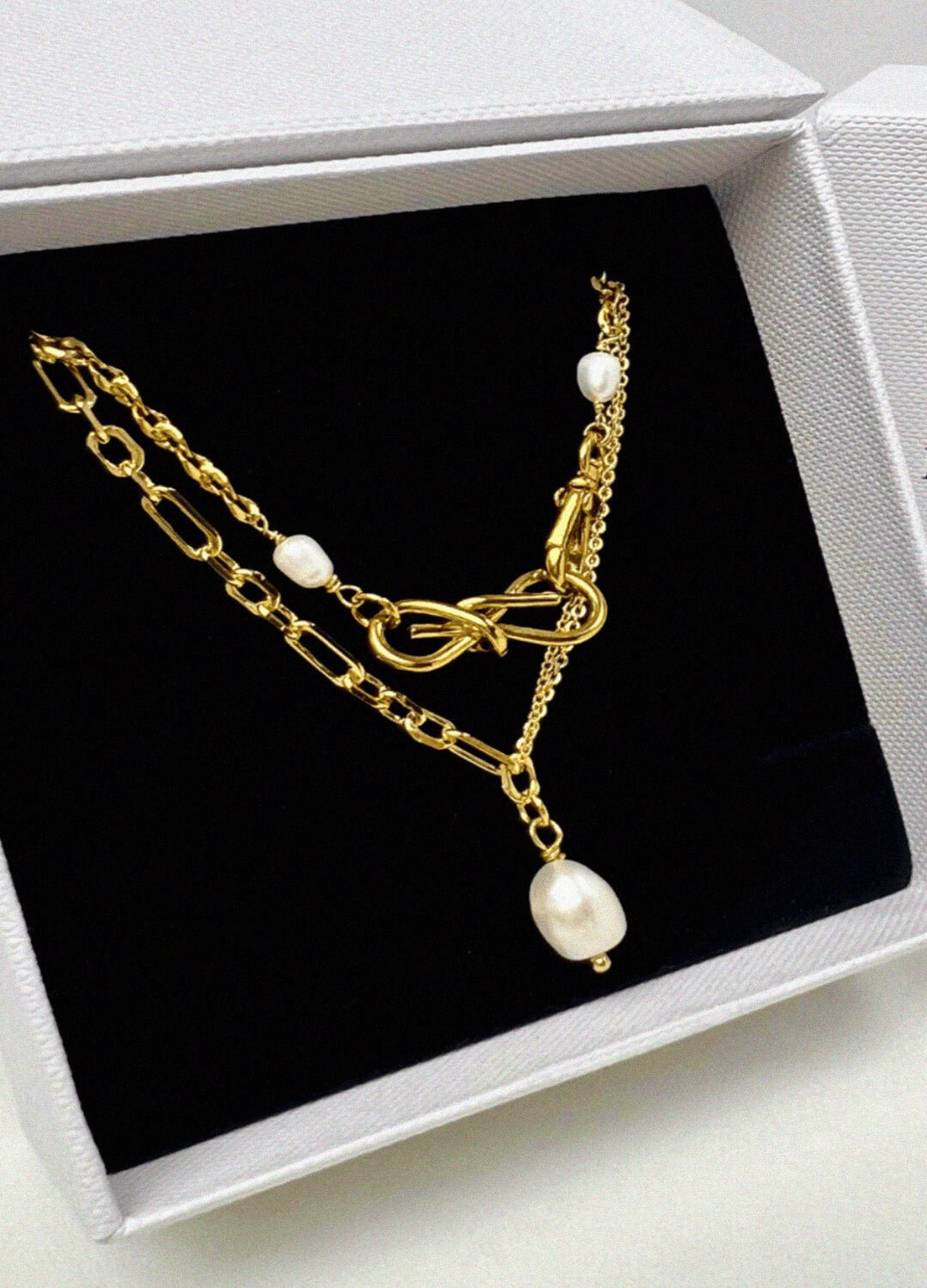 GOLD BOW & PEARL PENDANT NECKLACE STACK BUNDLE - FEMMES SANS PEUR - BDDF_SKUck1TPgTbCKfxAu1A