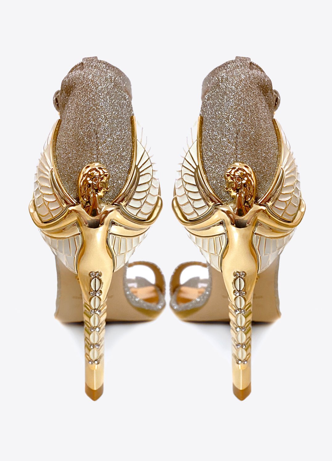 ¡Haz que todas las miradas se vuelvan hacia ti con nuestras sandalias Aurora con purpurina color champán! Perfectas para nuestras novias o para los fabulosos tacones de las fiestas. Inspiradas en nuestro amor por el Art Nouveau y las joyas del antiguo Egipto, las amplias alas de nuestra Reina Libélula potenciarán tu mentalidad y despertarán tus pies. Los cristales de Swarovski están incrustados en su cola para que brilles con cada paso. ¡Son auténticas joyas para tus pies! Hay una almohadilla de goma empotrada en la suela para ayudar a evitar resbalones mientras caminas.