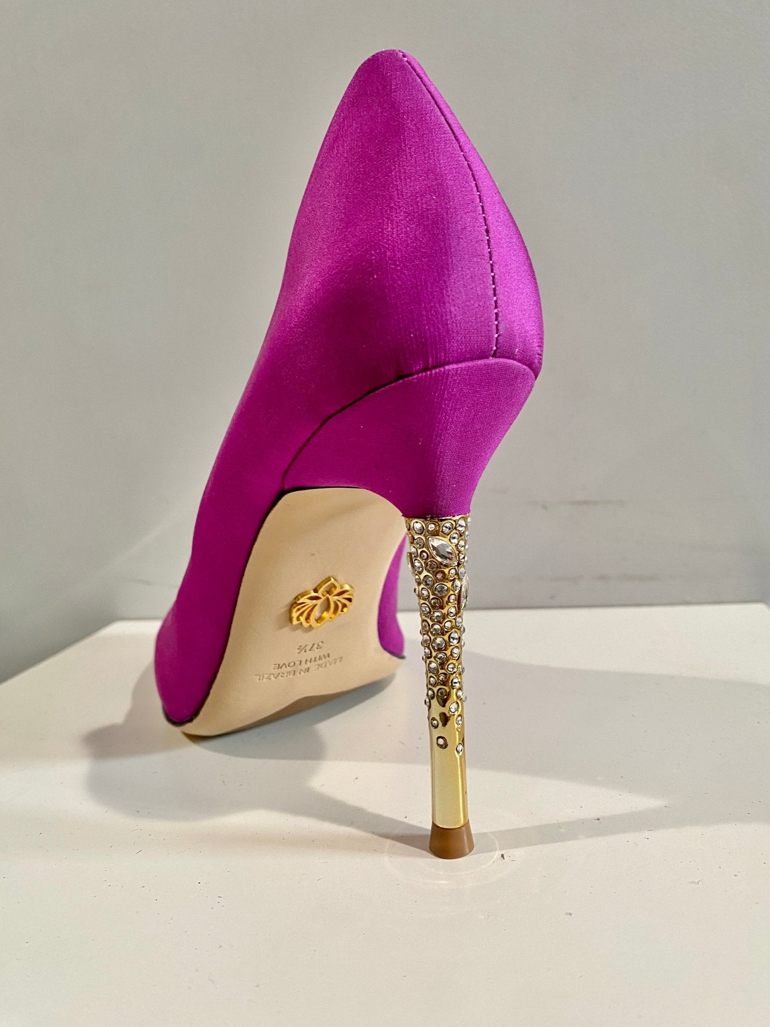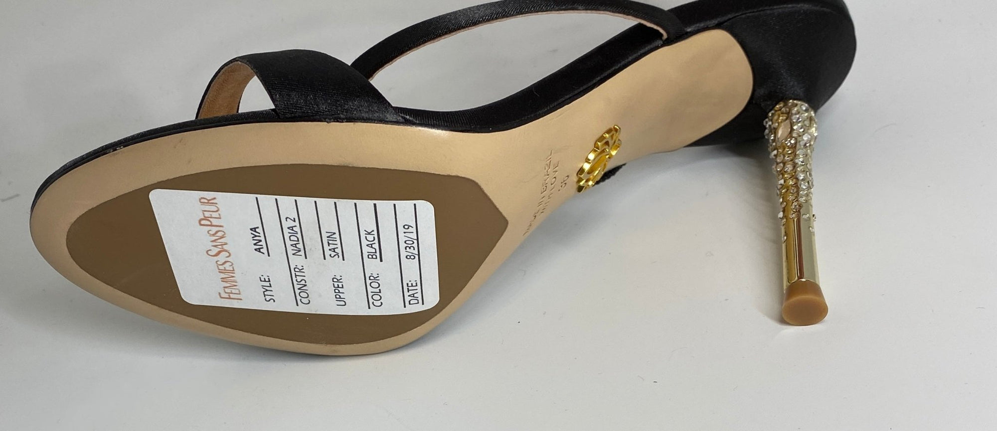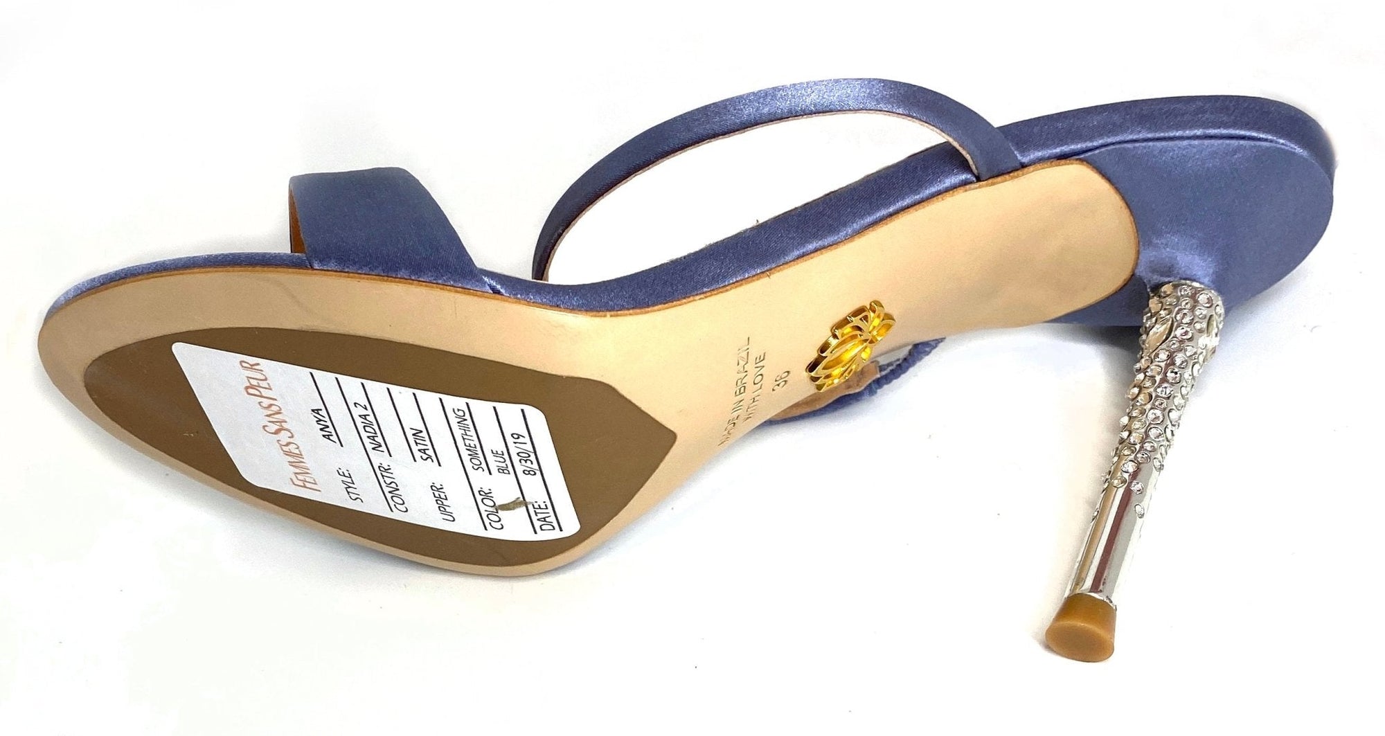 This classic 3-strap silhouette is updated in Silver Holographic Sheep Nappa. Our opulent heel features clusters of Genuine Swarovski crystals that will have you glittering with every step, while you walk with confidence & conviction! A rubber pod is recessed into the outsole to prevent slips.