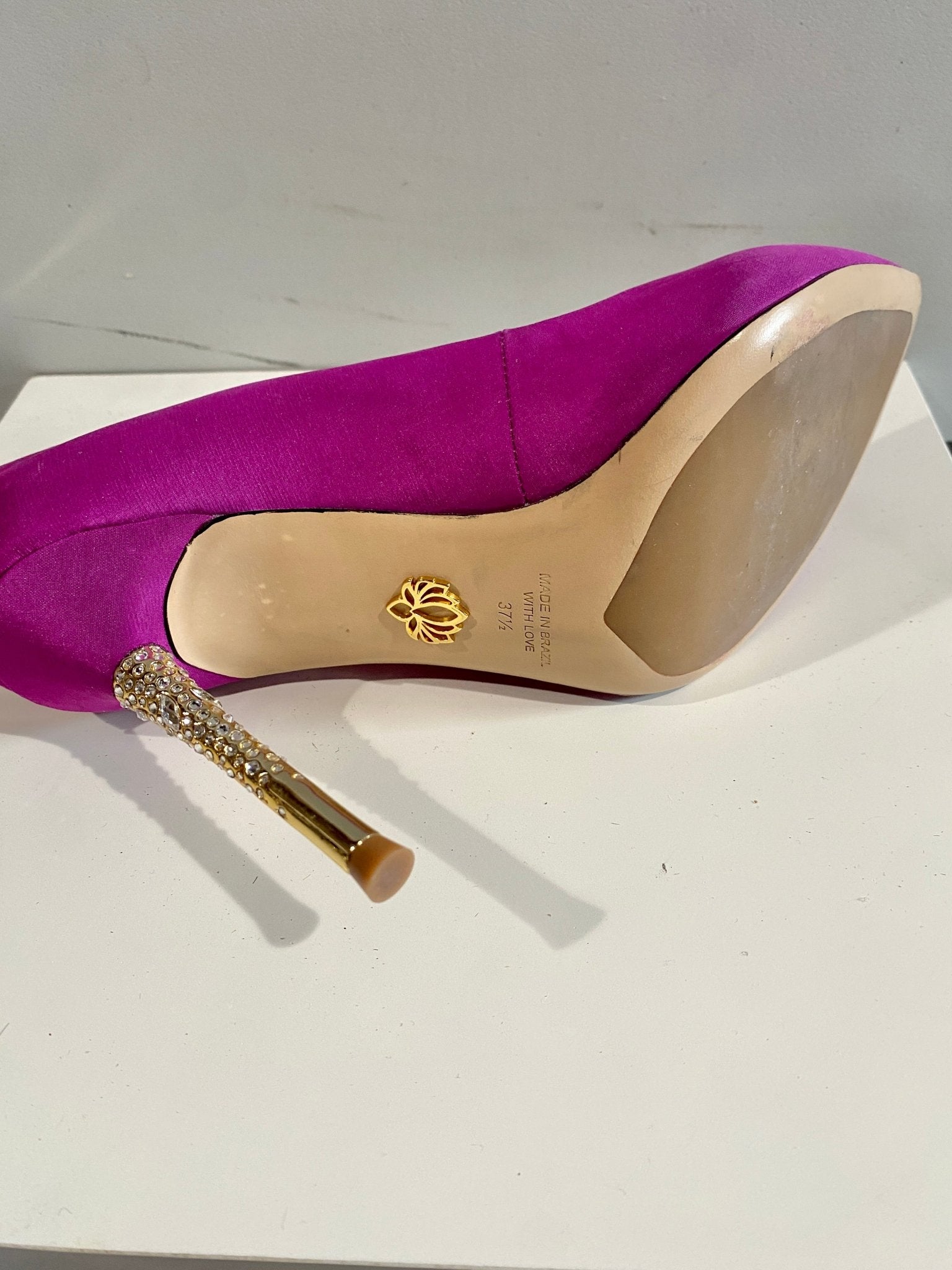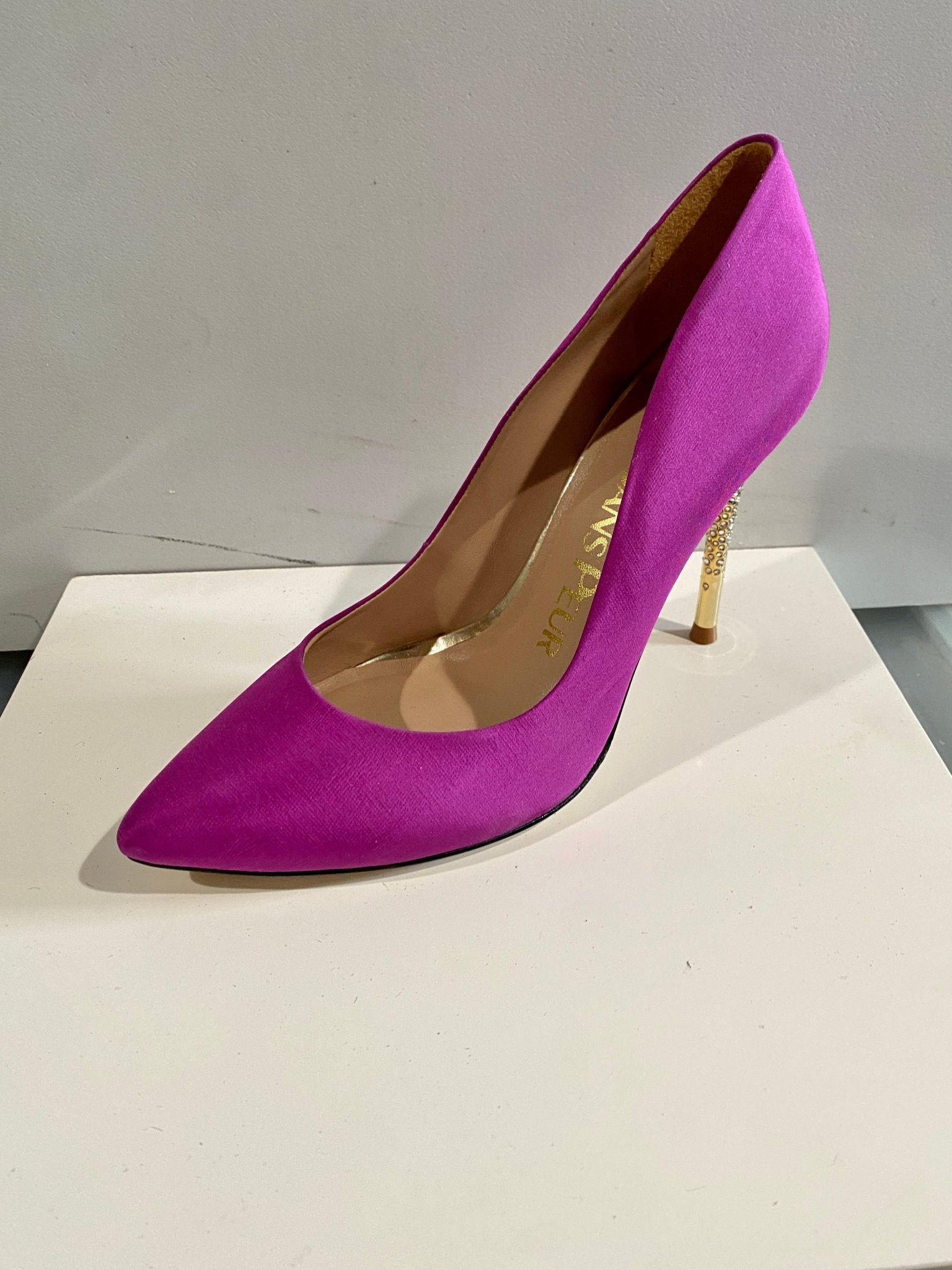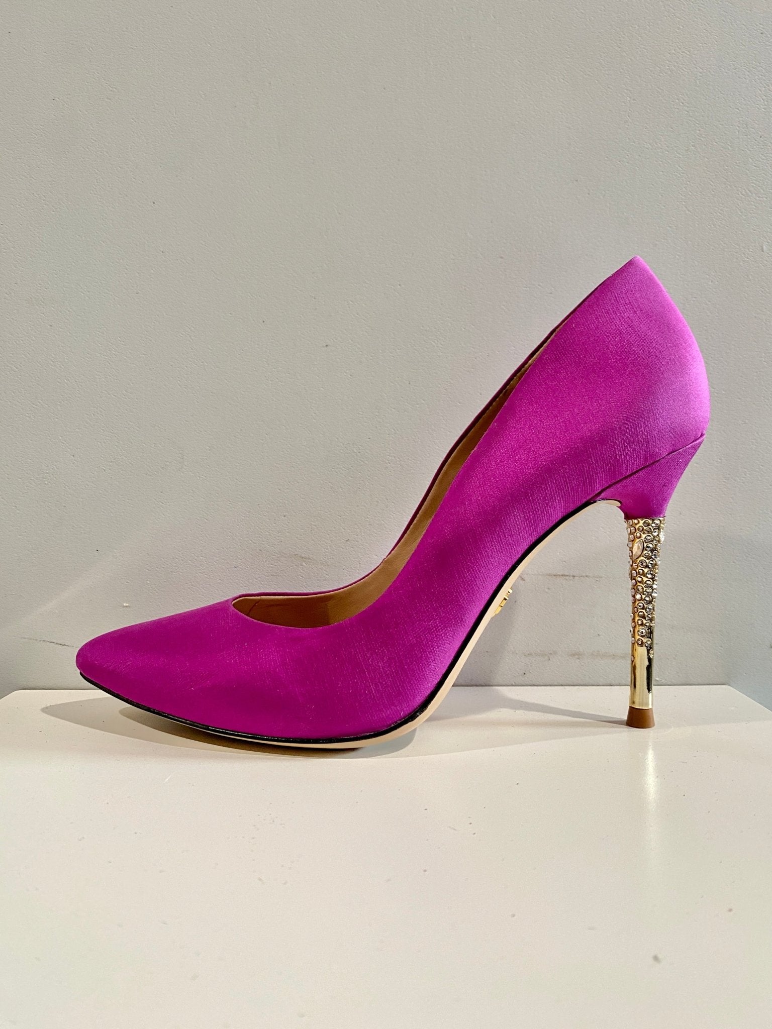This classic 3-strap silhouette is updated in Silver Holographic Sheep Nappa. Our opulent heel features clusters of Genuine Swarovski crystals that will have you glittering with every step, while you walk with confidence & conviction! A rubber pod is recessed into the outsole to prevent slips.