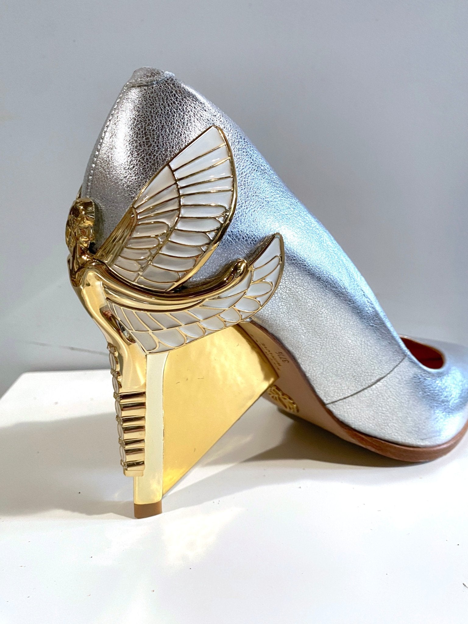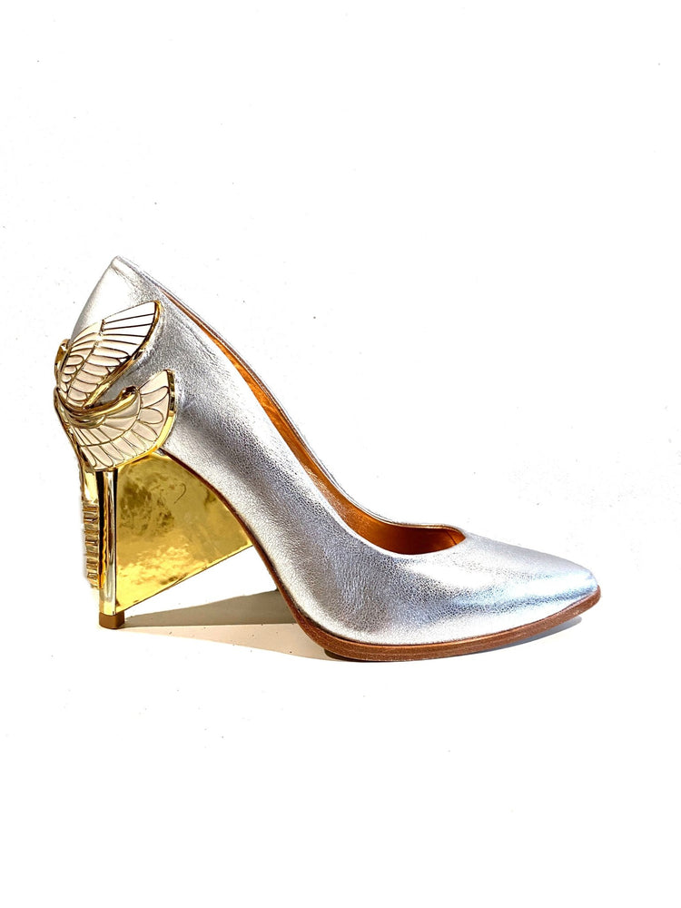Inspired by our love for Art Nouveau and ancient Egyptian jewelry, our Dragonfly Queen's expansive wings will empower your mindset and awaken your soles. Swarovski crystals are inset in her tail so you will be glittering with every step. They are truly jewelry for your feet! There is a rubber pod recessed into the sole to help prevent slipping on the go.