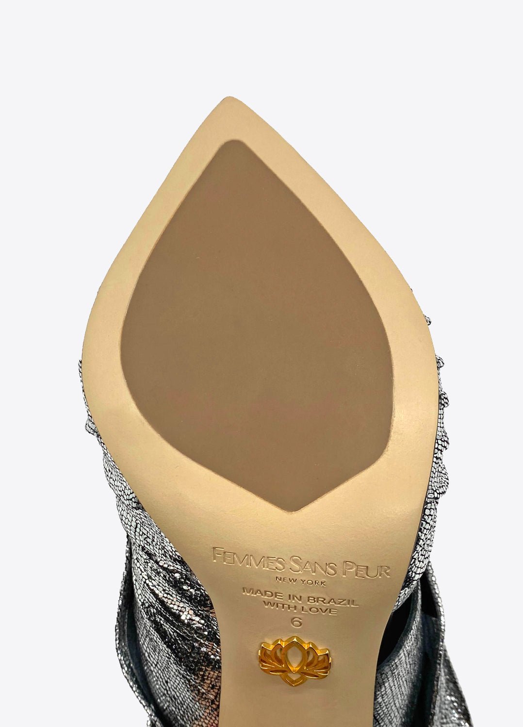 - Rubber pod inset Leather Sole