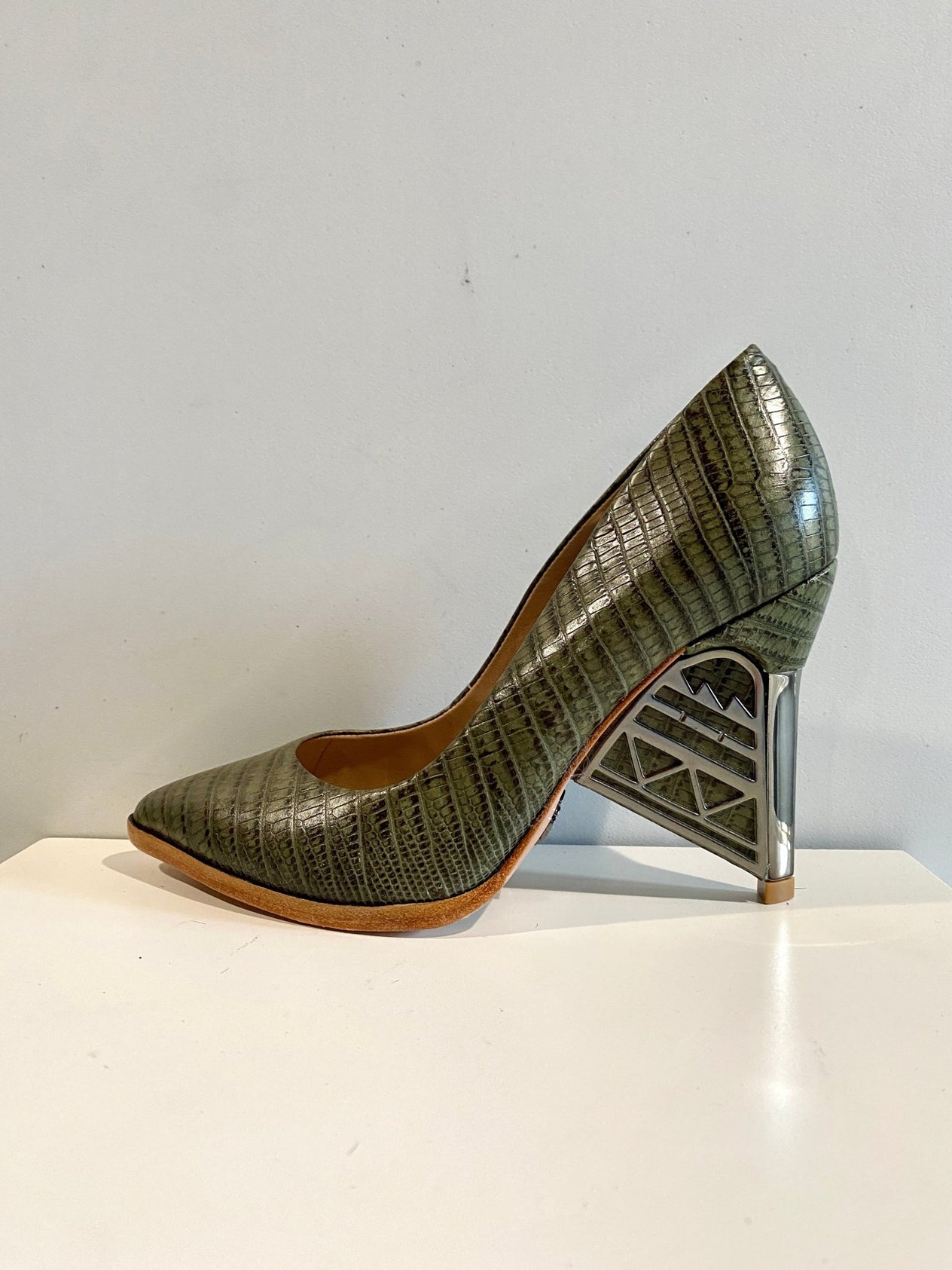 - Production Quality Samples never worn. Minor wear on heels see photos.