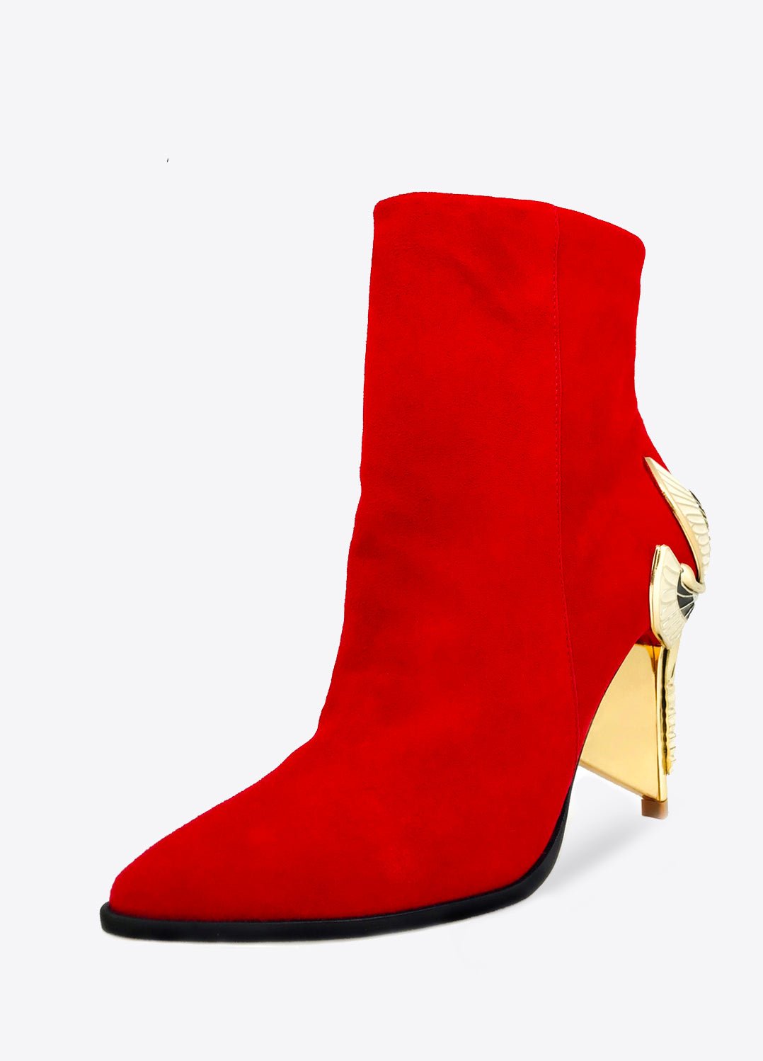 Inspired by our love for Art Nouveau and ancient Egyptian jewelry, our Dragonfly Queen's Booties expansive wings will empower your mindset and awaken your soles. Swarovski crystals are inset in her tail so you will be glittering with every step. They are truly jewelry for your feet! There is a rubber pod recessed into the sole to help prevent slipping on the go.